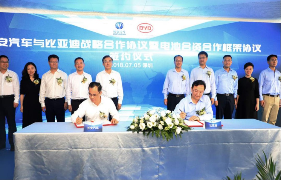 7月5日,长安汽车与比亚迪在深圳签署战略合作协议,且将联合设立以新能源动力电池生产、销售为主营业务的合资公司。双方将联合各自在传统汽车、新能源汽车、智能互联网、共享出行、海外市场等领域的优势资源,围绕汽车电动化、智能化、共享出行等领域展开全方位深度合作。