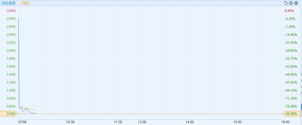 智通财经APP获悉,大庆乳业(01007)今日复盘,据悉,公司股份自2012年3月22日开始暂停在联交所买卖,已停牌6年。截至9时50分,跌85.09%,报价0.42港元,成交额2526.72万。
