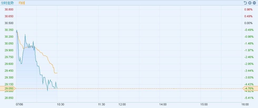 智通财经APP获悉,长飞光纤光缆(06869)今日股价续跌。截至10时29分,跌4.75%,报价29.05港元,成交额2138.3万。