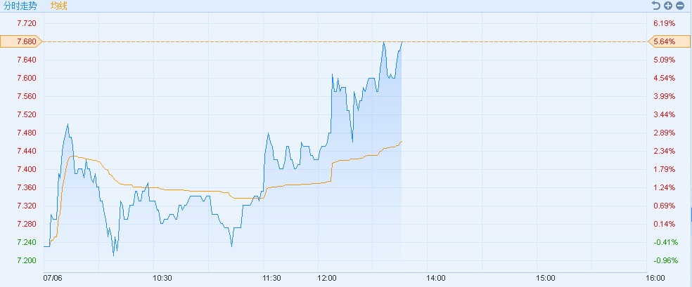 智通财经APP获悉,恒大健康(00708)午后放量上涨。截至13时45分,涨5.54%,报价7.68元,成交额5159.7万。