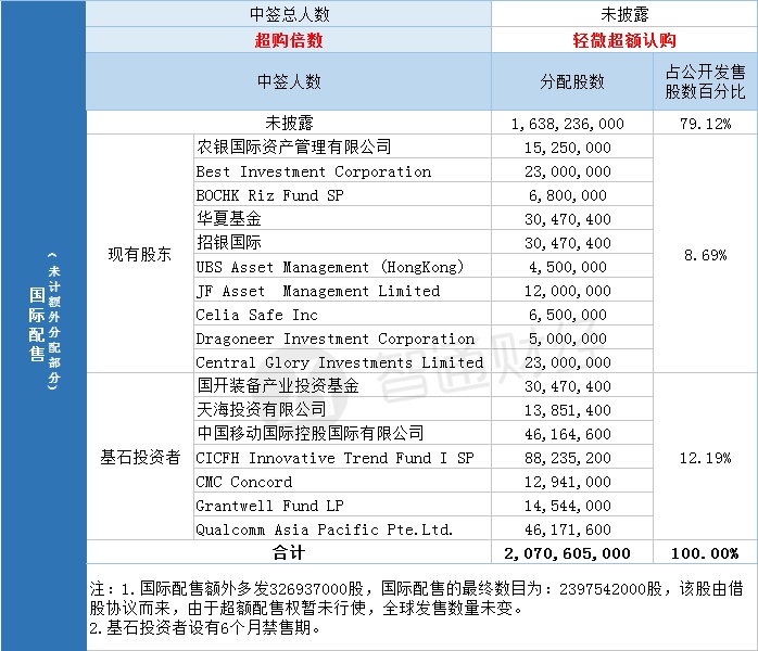 国际配售中签总人数未披露,轻微超额认购。