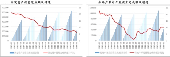 受益于2017年房地产销售情况较好,开发商存在补库存动力,目前房地产投资整体的较高增速,普遍超出了市场预期。但从房地产施工面积以及购置面积来看,整体增速都低于去年同期,意味着房地产调控政策已经先影响前期的施工和购置层面。