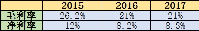 在收入增长的情况下,毛利、净利润也录得持续增长,毛利年复合增长率26.5%。净利润年复合增长率17.73%。但由于销售成本的上升,2016年时毛利率下滑至21%,拖累净利率下滑至8.2%,2017年时,销售成本控制得当,毛利率、净利率趋于稳定。