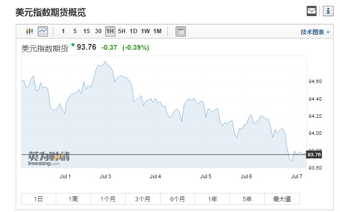7月6日美国劳工部公布的非农数据显示,美国6月非农就业人数增加21.3万人,好于市场预期,然而失业率和时薪两项数据表现令市场失望。美元指数跌破94关口, 抹去了6月14日加息以来全部涨幅 。