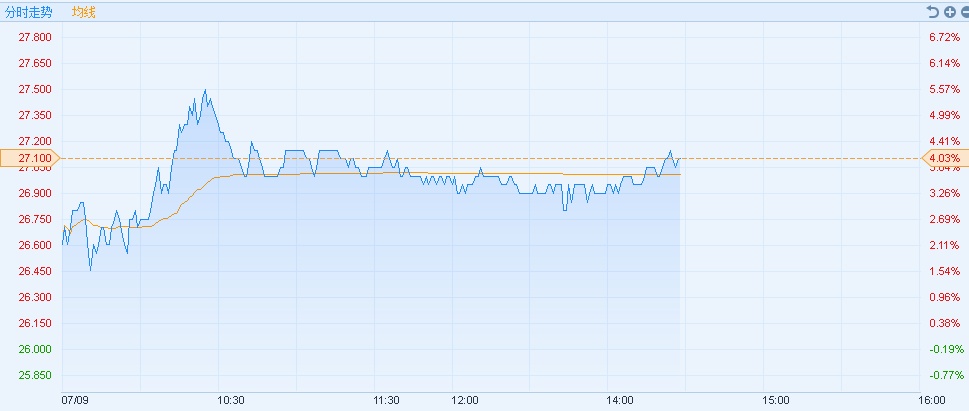 智通财经APP获悉,德银重申融创中国(01918)为发展商中的首选之一,截至14时27分,涨4.03%,报价27.1港元,成交额4.17亿。