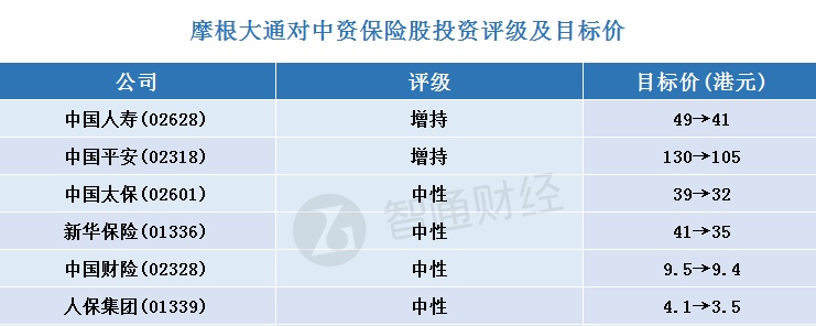 经智通财经APP整理,摩根大通对中资保险股投资评级及目标价如下: