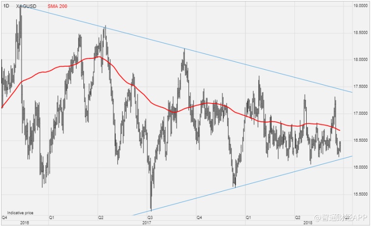 过去18个多月来,白银仍在交易区间内窄幅震荡。过去一个季度,银价曾两次尝试突破200日均线,触发了两次重大调整。因此,第三季度,市场情绪仍面临挑战,尤其是如果经济放缓的最新迹象开始导致工业金属价格进一步走软的话。