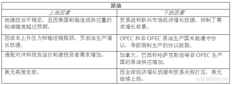 以下是智通财经APP统计的未来分别影响油价上涨和下跌的因素: