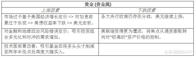 以下是智通财经APP统计的未来分别影响金价上涨和下跌的因素: