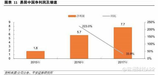2017 年营收占比分别为84.7%、13.6%和1.7%。2017 年实现代理销售额4330 亿,覆盖全国186个城市。业绩稳步增长,盈利能力持续上升。公司2017 年实现营收46.3亿、净利润7.7 亿,同比分别增长15.9%和33.8%。受益于运营效率的提升及觃模效应扩大,2017 年毛利率、净利率分别达20.7%、16.5%,较2016 年上升1 个和2.2 个百分点。