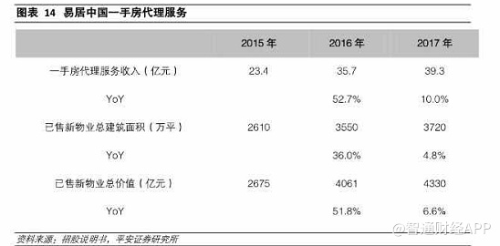 2017年实现一手房代理服务收入39.3亿元,同比增长10.0%,占公司收入比达85%。2017年实现代理销售面积3720平米,销售额4330亿元,同比增长4.8%和6.6%。公司已经与42家领先放弃签订了时长1-6年的战略合作协议,保障代理销售额稳步增长。