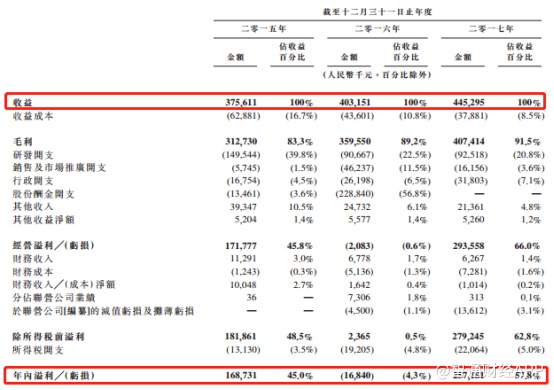 智通财经APP观察到,2015-2017年,公司营业收入从3.76亿元(人民币,单位下同)增至4.45亿元,复合增长率为8.8%;与此同时,公司净利润也实现持续增长(2016年公司股份酬金开支为一次性开支,对公司持续经营没有影响)。