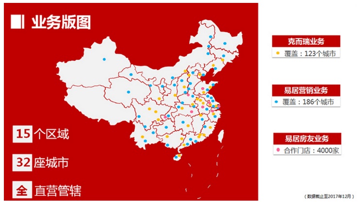 3、二手房经纪起步虽晚,但是模式轻,进展快,截至2017年底,已覆盖全国22座城市、4000家门店。