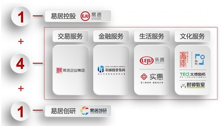 易居中国旗下的房地产交易服务业务上市平台。易居企业集团控股股东为易居中国,易居中国于2007年8月纽交所上市,2016年8月完成私有化。易居中国定位为房地产全产业链服务商,涉及交易、金融、生活、文化四大领域。易居企业集团未来将成为易居中国旗下的房地产交易服务业务的上市平台。此外,房地产O2O整合服务平台——乐居控股(交易所代码:LEJU)有限公司和专业财富管理机构——钜派投资集团(交易所代码:JP)已在纽交所上市。