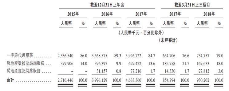 公司主要有三大业务板块:一手房代理服务、房地产大数据及咨询服务、二手房经纪平台业务。三者分别始于2000年、2002年和2016年,其中: