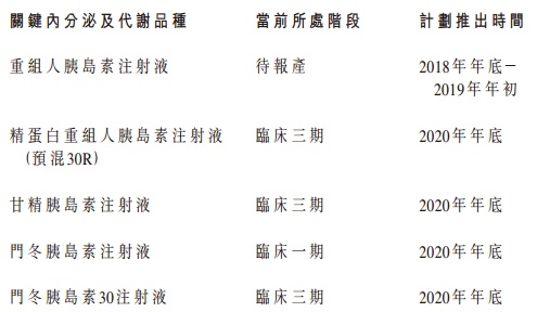 而胰岛素方面大部分也将在2020上市。以甘精胰岛素为例,期内,该产品已启动了三期临床,国内进度排名还算靠前。
