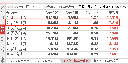 据交易宝数据显示,在上市首日7月9日的净买入/净卖出券商中,买入券商第一的为摩根香港及盈透证券等专业投资者和机构投资者惯用券商。此外,鉴于小米暂未纳入港股通的标的,但是富途证券或可代表不少内地投资人的情绪。