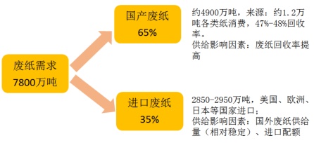 首先就纸种而言,目前包装纸仍有废纸供应对价格有较大确定性的支撑,所以包装纸未来是比较有确定性的,其次相比于小纸企,大纸企优势过于明显。智通财经APP了解到,箱版、瓦楞纸的主要原材料是废纸,每生产1吨箱板/瓦楞纸需要耗费1.1吨废纸。废纸来源则是靠回收使用过的纸材料,在国际上废纸一般区分为欧废、美废和日废三种,我国的废纸回收率较欧洲美国和日本相比仍然较低,长期以来我国的箱板纸等以废纸为原材料的造纸企业每年需要以进口废纸来补充原材料,近年来国内废纸回收率虽然不断提升,但到了2016年,外废依然有36.5%的依赖度。