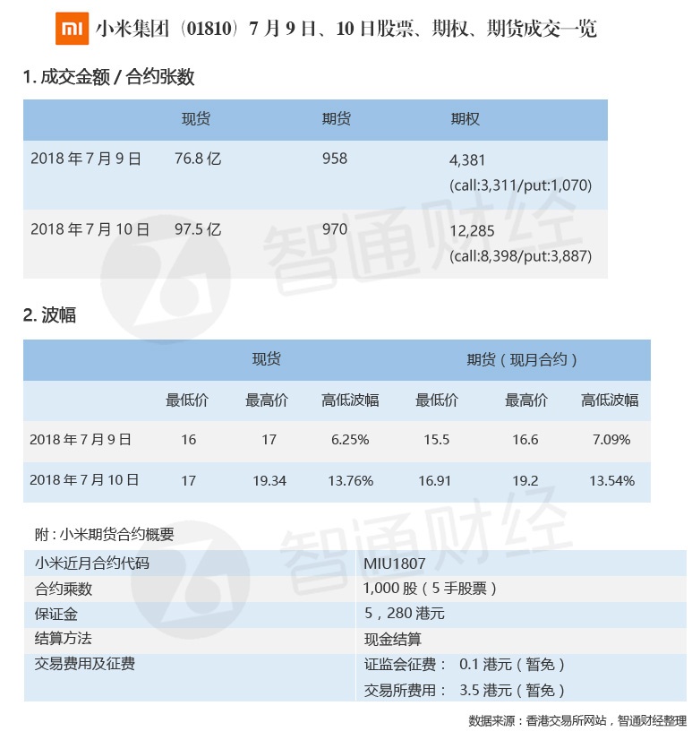 7月3日,港交所发布公告,即会在小米上市当日同步推出股票期权及股票期货。