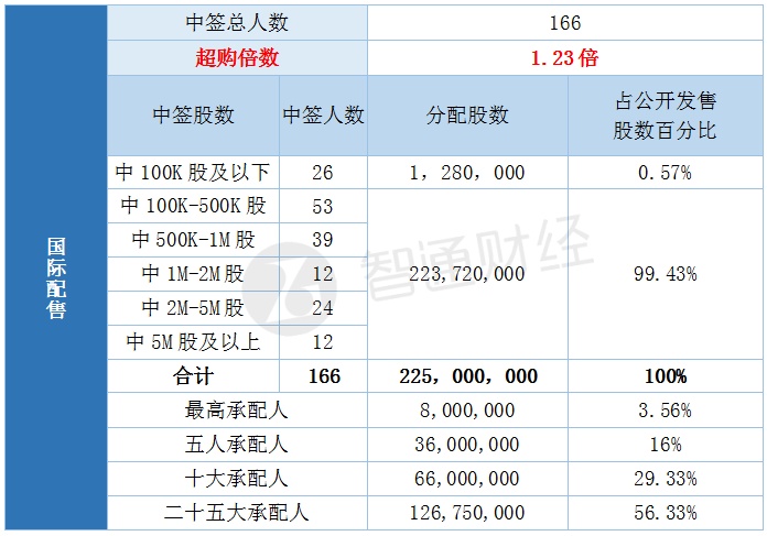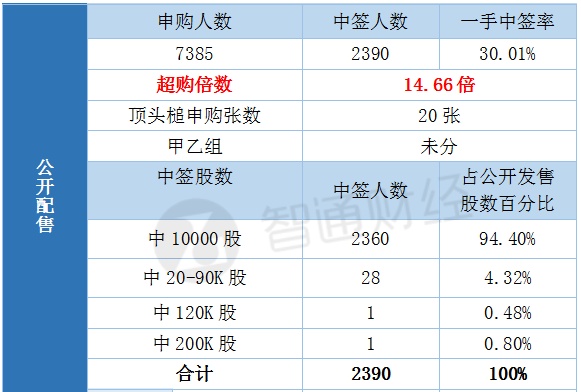其中,公开配售H股申购人数7385,一手中签率30.01%,超购倍数14.66倍。