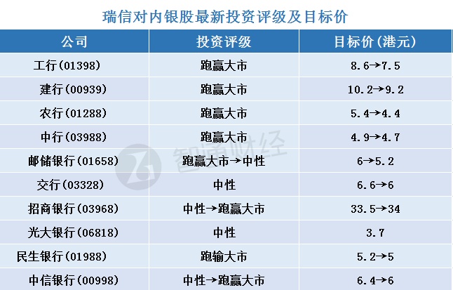 经智通财经APP整理,瑞信对内银股最新投资评级及目标价如下: