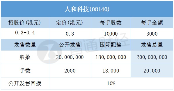 智通财经APP获悉,7月11日,香港钢筋混凝土建造业第二大机械钢筋并接服务供应商人和科技(08140)配售结束。本次配售招股价区间为0.3-0.4港元,最终定价0.3港元,每手3000港元。