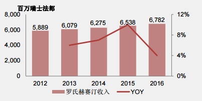 1998年9月25日,罗氏的赫赛汀(曲妥珠单抗)获得FDA批准上市,2002年9月5日进入中国市场。发展到2014年,其欧洲专利到期,美国专利也将在2019年6月到期。尽管专利即将到期,但罗氏依靠该药物每年获利近百亿美元。如2016年,该药物实现营收67.82亿瑞士法郎(约合70.34亿美元),同比增长4%,全球销售排名第8。