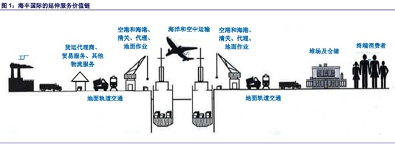 在确定了细分客户群体和特有业务模式后,其集装箱航线和陆上物流网络图就走高频率、短路途、全流程的路线,这一系列的特点组成了海丰国际特有的延伸服务价值链。