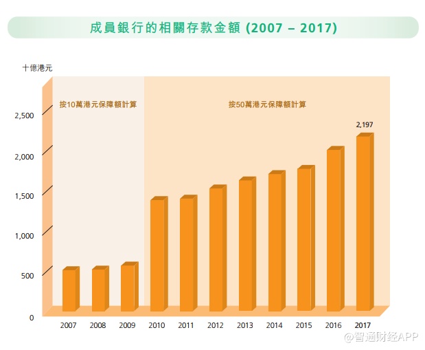智通财经APP获悉,香港存款保障委员会(存保会)7月11日刊发《2017-2018年报》。数据显示,2017年成员银行相关存款总额为 21970 亿港元,较2016年的 20260 亿港元增加8%。前5名成员银行存款16320亿港元,占比74%。截至2018年3月底,存款保障计划基金总收入4.62亿港元,同比增21.4%。