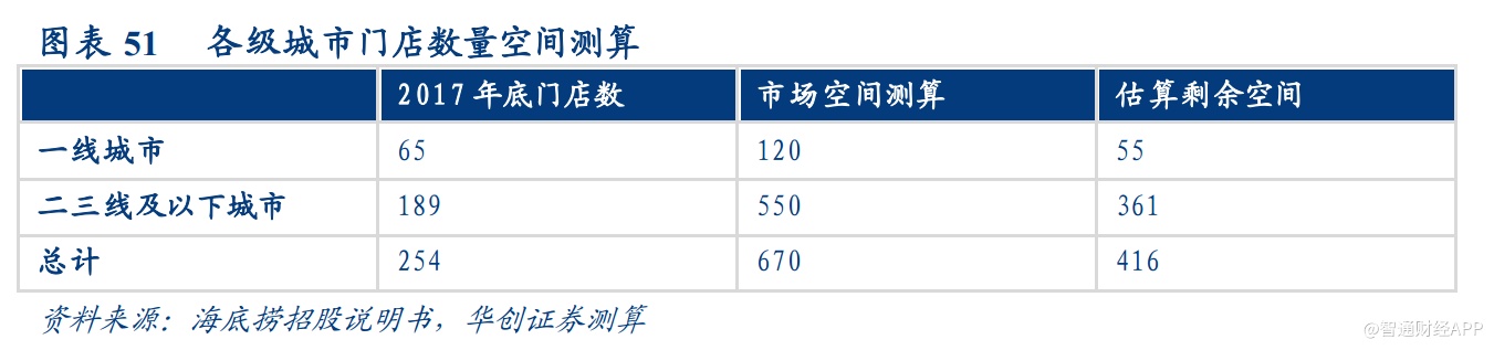 且其培训、选拔和薪酬体系完善,人才储备完备,能高速扩张。华创认为海底捞在保守测算下也能轻松完成近700家门店的开张和运营,而达到2000家的扩张瓶颈短期难现。