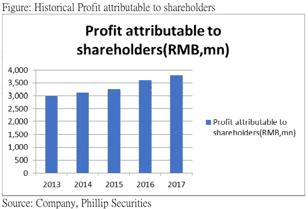 我们预期,恒安阿米巴经营模式成效将在2018年全面反映,小团队达标率有望由2017年的约20%提升至50%以上,并在收入及费用率控制将有进一步贡献。考虑到行业整合释放的需求,恒安本身电商渠道的改善,双位数字收入增长目标有望达标,并将主要受到销售数量带动,整体售价预计受到高毛利产品带动能够保持平稳,而纸巾将为三大业务中增长最快的业务。不过,由于我们也同时考虑到行业竞争激烈,故预计收入增幅仅将有低双位数字。