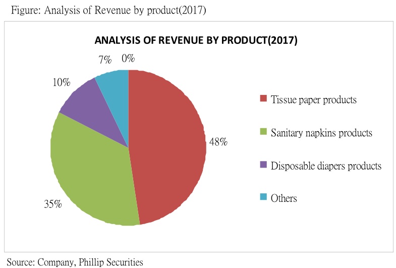 在2017年的中国市场市占率方面,纸巾为20%,为行业龙头;卫生巾为27至28%,也为行业龙头;纸尿片为单位数字,主要由于该市场较为分散,但为内地同行中的龙头。