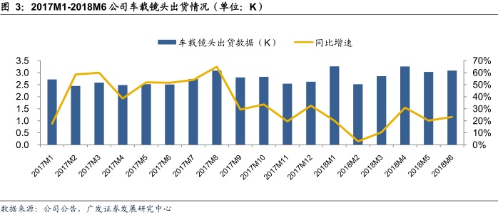 (3)车载镜头:受益车载行业较高速度增长及公司市场份额的扩大;