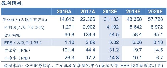 当前智能手机行业已全线回暖,公司作为国产安卓机光学领域核心供应商将继续受益光学产业持续创新。我们预测18-20年公司收入分别为311.3/433.6/577.3亿元,同比增速为39.2%/39.3%/33.1%,归母净利润分别为41.9/66.4/89.7亿元,同比增速为44.5%/58.4%/35.1%,EPS分别为3.82元、6.06元和8.18元,当前价格对应PE分别为31.2X、19.7X、14.6X,给予“买入”评级。