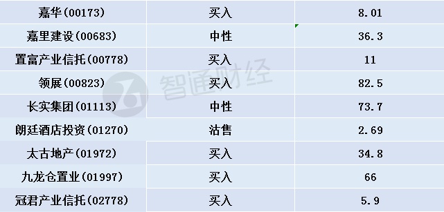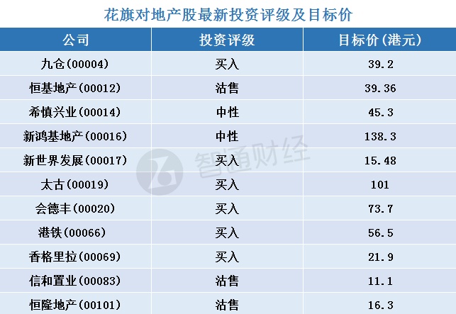 经智通财经APP整理,花旗对二十支地产股最新投资评级及目标价如下: