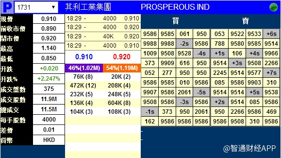 智通财经APP获悉,全球知名品牌设计、开发及制造休闲包及背包(其主要为双肩背包)并提供优质供应链管理服务的制造商其利工业集团(01731)将于下一交易日挂牌,上市前夕,据辉立交易场资料显示,其利工业暗盘开市报0.92元,较招股价0.89元涨0.03元。收报0.91元,较招股价涨2.247%,每手4000股,不计手续费,每手赚80元。