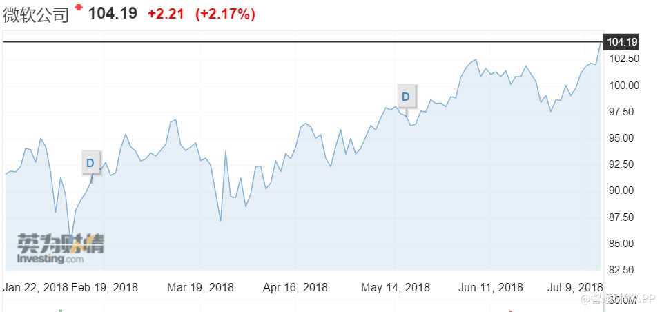 微软股价涨逾2%,至104.19美元,市值首破8000亿美元大关。亚马逊上涨41.62美元,报收于1796.62美元,涨幅2.37%,已是连续第五个交易日走高,创下收盘历史新高。Facebook涨幅2.19%,报收于206.98美元,同样创下收盘历史新高,公司市值达5991亿美元,逼近6000亿美元关口。