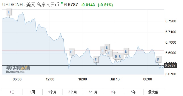 智通财经APP获悉,7月13日,离岸人民币曾上涨逾200点,一度摸高6.6742。截止北京时间9:00,离岸人民币涨143个点子或0.21%,报6.6787,收复6.68关口。在岸人民币曾涨近100点,摸高6.6649。截止北京时间9:00,在岸人民币微升1个点子,报6.6663。