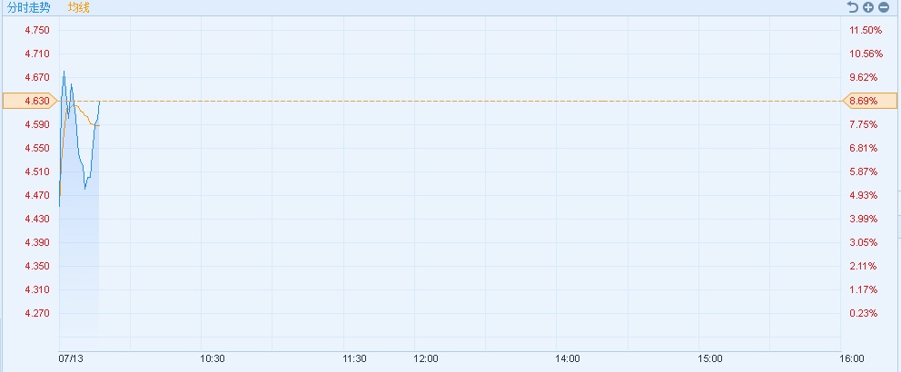 智通财经APP获悉,港股娱乐直播第一股映客(03700),今日股价持续上涨,截至9时46分,涨8.69%,报价4.63港元,成交额6845.9万。