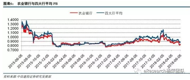 但在估值方面,通过与四大行平均水平的对比,农行的估值水平持续较低。