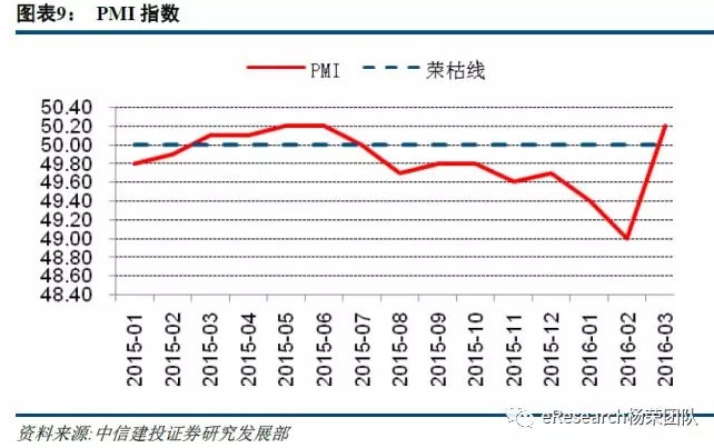 而2016年3月,PMI回升至荣枯线以上,这也与农行、银行业以及大盘在2016年2月触底并开始回升的表现相一致。