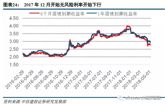 从2017年12月开始,国债到期收益率逐渐下行,从而带动银行股估值大幅上升。
