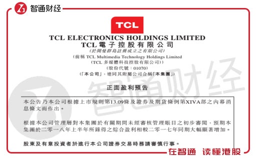 智通财经APP获悉,TCL电子于7月12日发布公告称,预期公司截至2018年6月30日前6个月所取得的综合盈利相较2017年同期大幅显著增加。