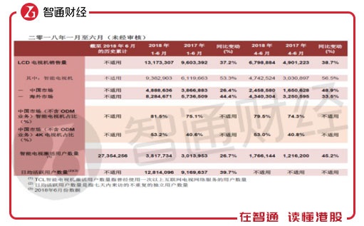 公告显示,预期综合盈利大幅增加的主要原因是2018年上半年LCD电视机销售量及销售额均大幅增长,销售量再次突破近五年最大增幅。中国市场和海外市场持续稳定增长,其中海外市场表现尤其亮眼,北美市场保持稳定增长,新兴市场保持快速上升势头,欧洲市场同比增幅显著;