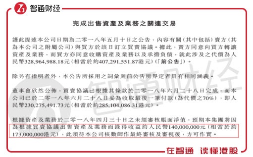 TCL电子预期公司将因为根据买卖协议出售资产及业务而取得一次性收益,并表示该收益将于公司2018年中期业绩内反映。