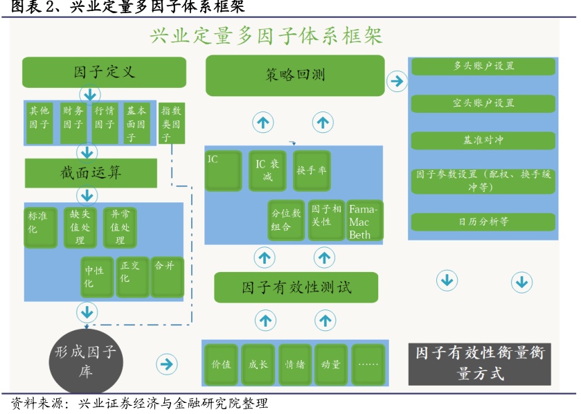 资本资产定价模型(CAPM)以及套利定价模型(APT)孕育了多因子选股体系。整个多因子体系包括:Alpha模型、组合优化、风险模型,尤以Alpha模型最为重要,是多因子体系的核心和基石。Alpha因子是构成Alpha模型的基础,我们兴业定量研究团队针对A股构建了价值、成长、动量&反转、质量、分析师情绪、另类等六大类共计112个因子,在以往的报告中也分别验证了不同因子的表现。