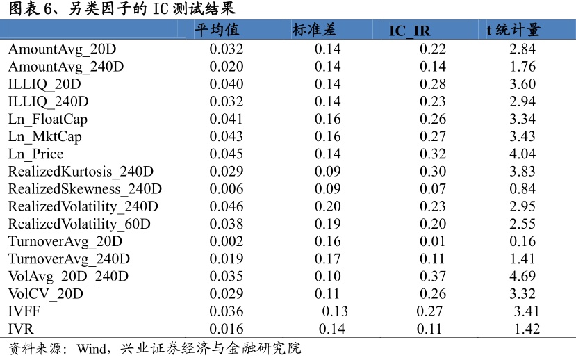 我们通过 IC 测试以及分位数组合测试研究上述因子的选股有效性。根据 IC均值以及 T 统计量,我们发现绝大部分因子的选股效果(相应的 IC 均值在 0.03,T 统计量稳定在 3 左右)相对比较显著。