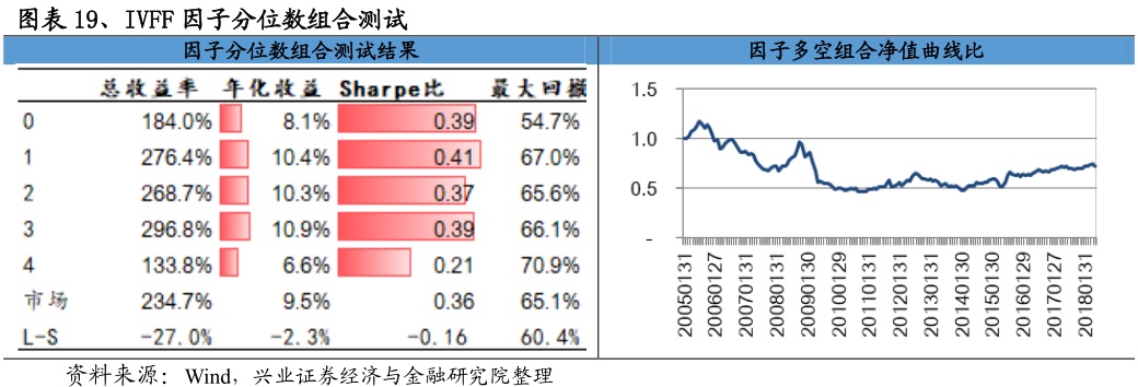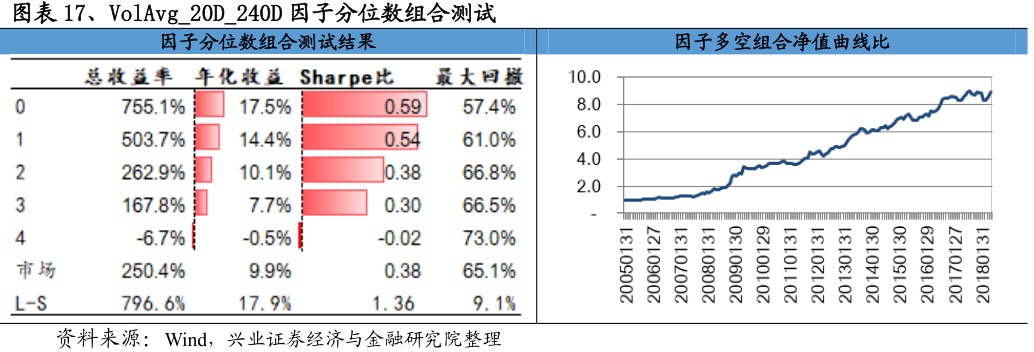 反映了投资者对流动性的偏好。从分位数组合测试来看,该因子表现相当优异,各组别严格单调,多空组合年化收益率17.8%,夏普率1.36,最大回撤9.1%,具体参见图表-17。