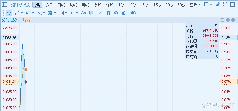 智通财经APP获悉,美股周五(13日)开盘涨跌不一。道琼斯工业平均指数低开0.80点,报24924.09点;标普500指数低开1.90点,跌幅0.07%,报2796.39点;纳斯达克综合指数高开3.98点,涨幅0.05%,报7827.89点。