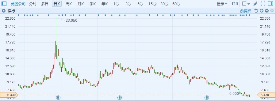 此后,美图股价留给市场的想象空间越来越小,走势挣扎。截至2018年7月13日,最新报价为6.43港元,较发行价8.5港元低24%。